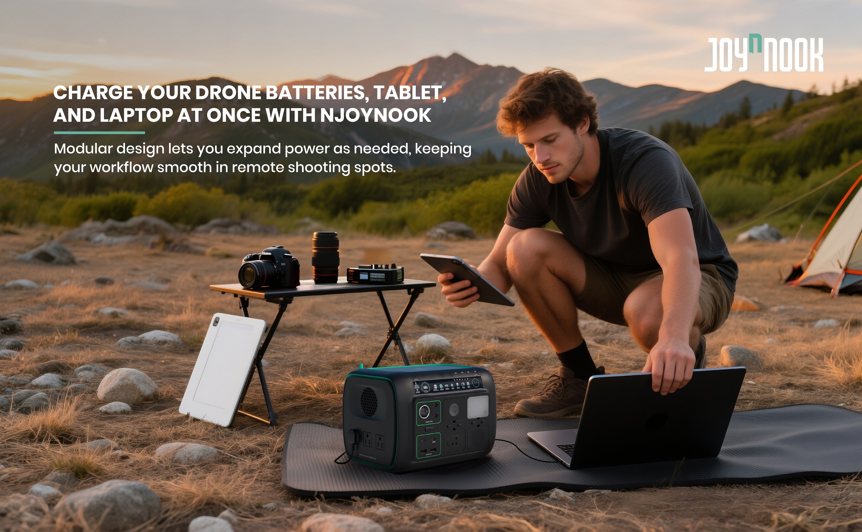 You need multiple, fully charged batteries for lengthy drone shots. No need for a quick return to base with game-changer battery expansion packs. These will be connected to a trusted portable source, such as the NJoyNook integrated power station. Such modularity gives multiple advantages: