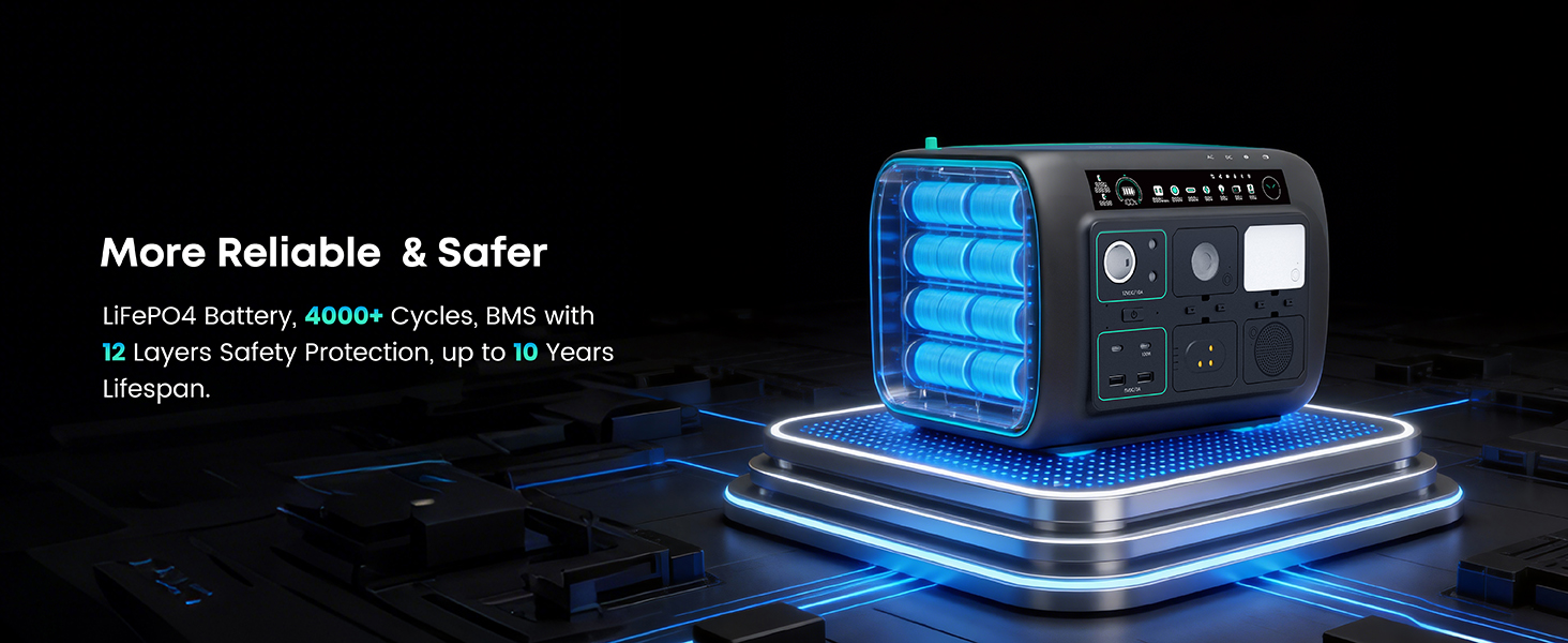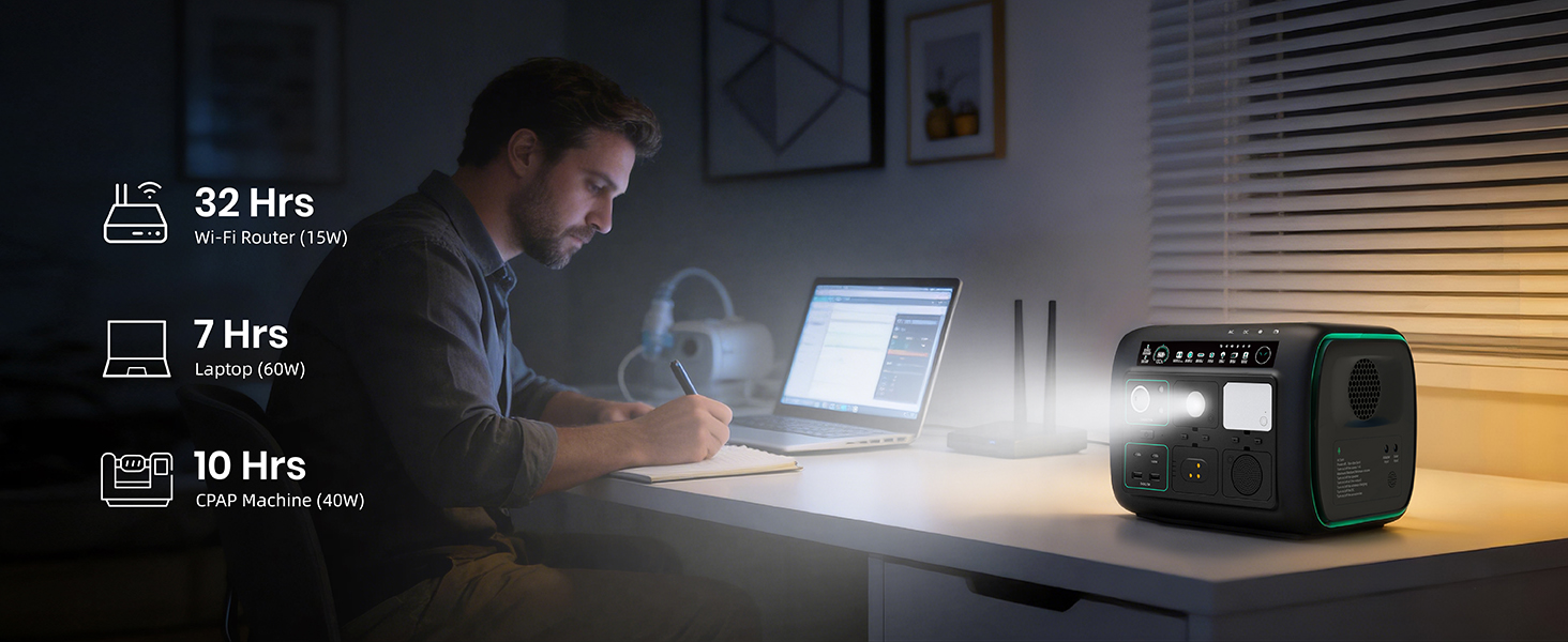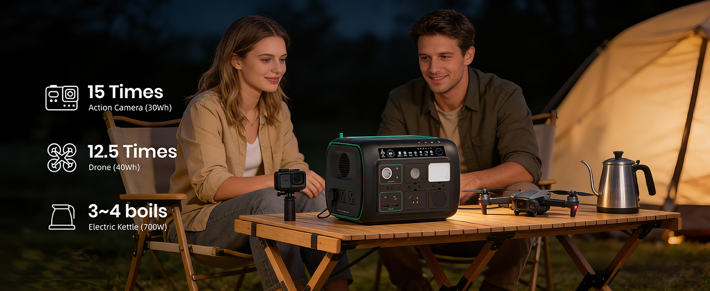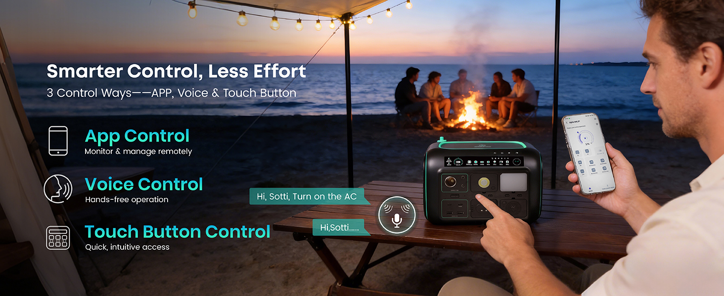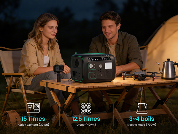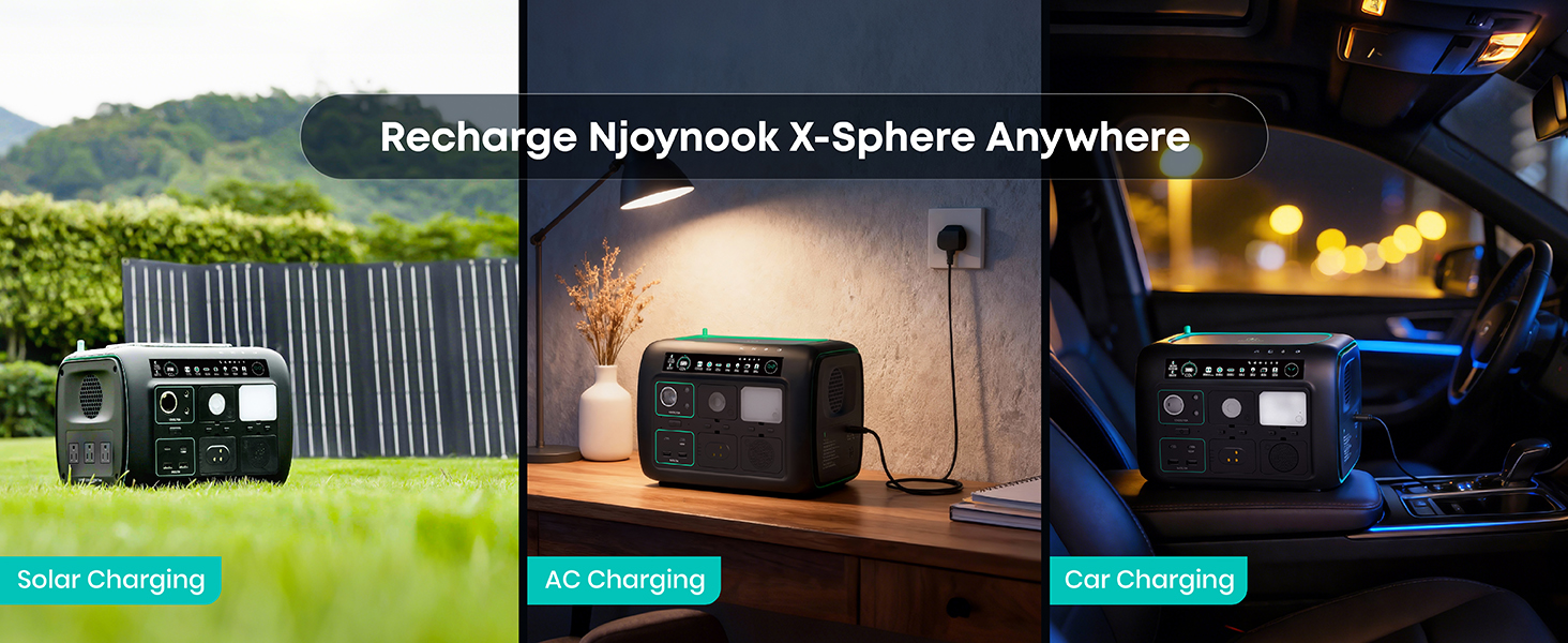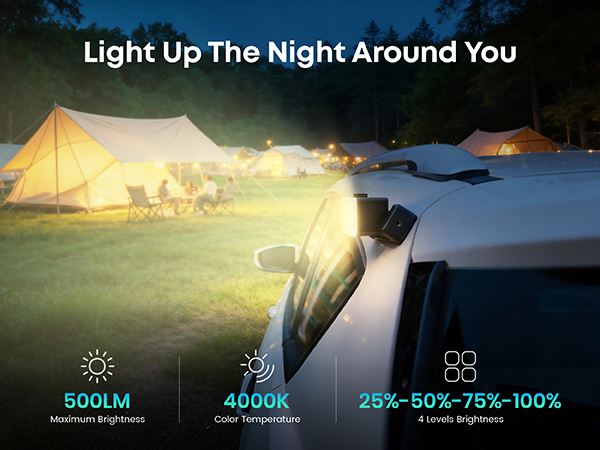 [5-in-1 Modular Power Station] 512Wh / 800W portable power station with 4 detachable modules: Spot Light, Panel Light, Speaker, and Power Bank. Use each module independently or combine them to build your own camping & outdoor setup. [Voice + App Smart Control] Control power and lights with voice commands or the mobile app—hands-free, convenient, and perfect for camping, RV trips, and everyday use. [800W Rated, 1600W Surge | 10 Outputs] The power station runs up to 800W continuously and supports 1600W surge. Includes 3 AC outlets, 2 DC5521, 2 USB-A, 2 USB-C, and a car socket—ideal for outages, travel, and home backup. [4,000+ Charge Cycles & 10 Years Lifespan] With advanced LiFePO4 cells, the Njoynook power station supports up to 4,000 charge cycles and features multi-layer safety protection for dependable power year after year. [3 Mounting Accessories for Versatile Use] The solar generator includes a magnetic holder, tripod, and backpack clip. Mix and match these accessories to power your outdoor life.