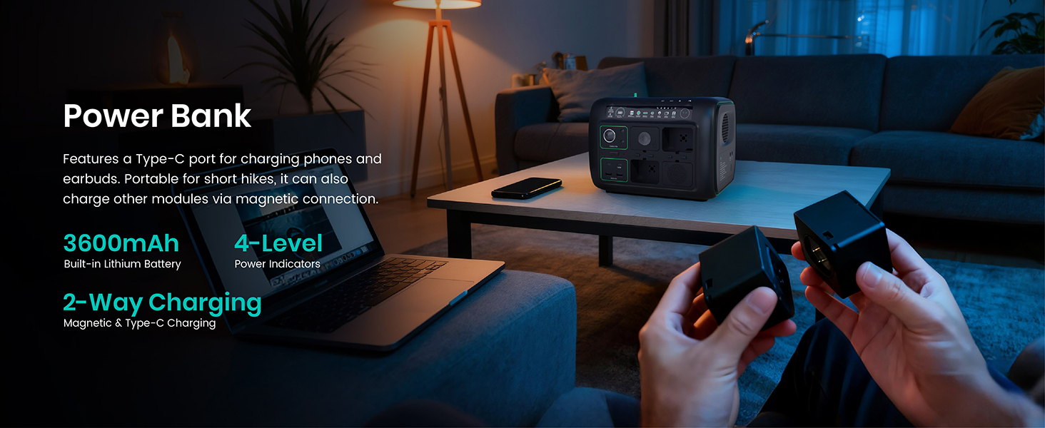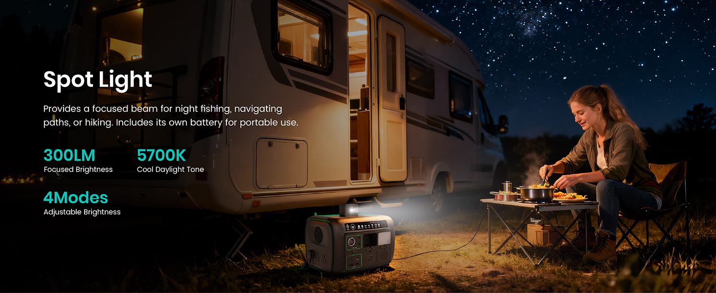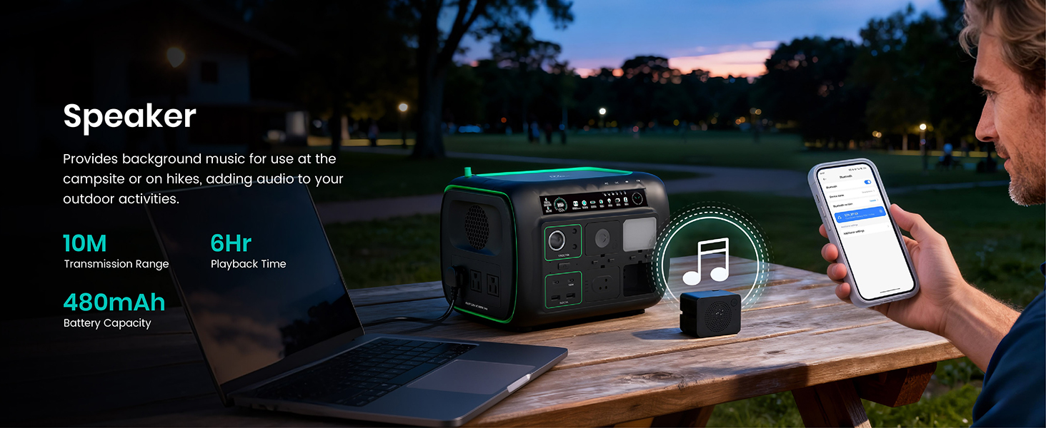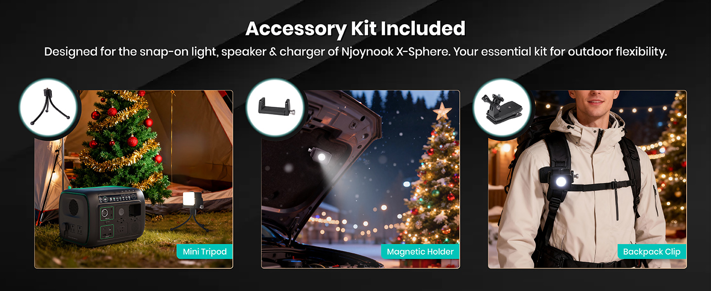 [Modular Design] Includes a panel light, a spotlight, a device charger, a speaker.